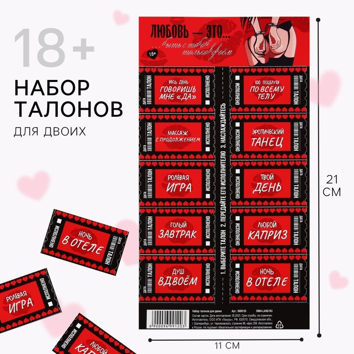 Набор игровой для двоих «Любовь - это...», 10 талонов, 11 х 21 см