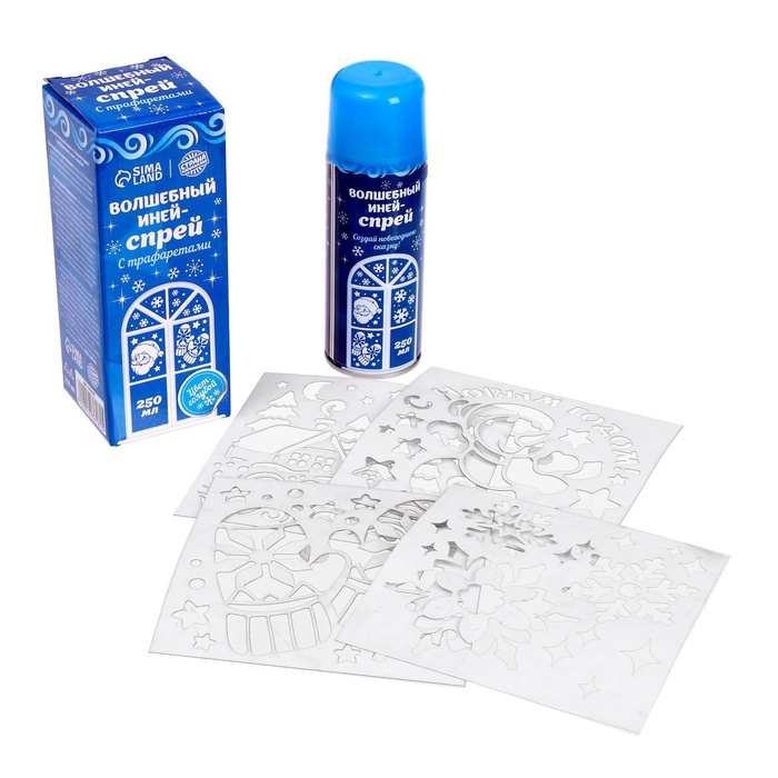 Искусственный снег спрей «Зимняя сказка», 4 трафарета, 250 мл, белый