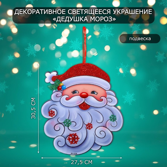 Новогоднее светящиеся украшение настенное «Дедушка мороз», подвеска, 30,5х27,5 см