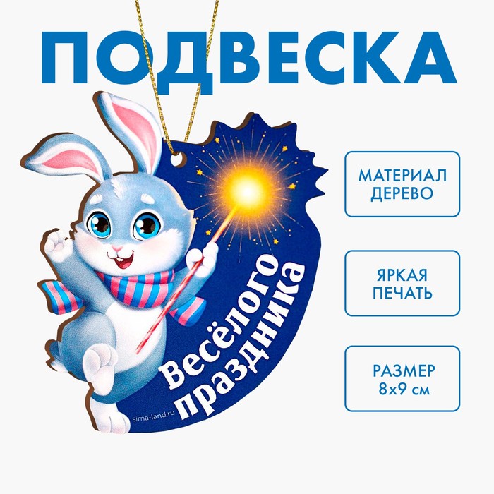 Ёлочная игрушка - подвеска деревянная «Новый год! Зайка»