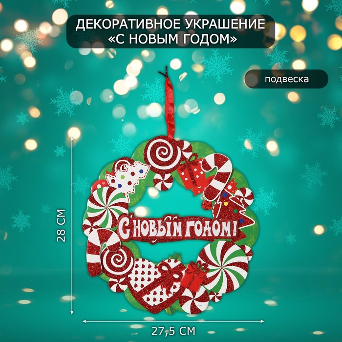 Новогоднее украшение настенное «С Новым годом», подвеска, 28х27 см