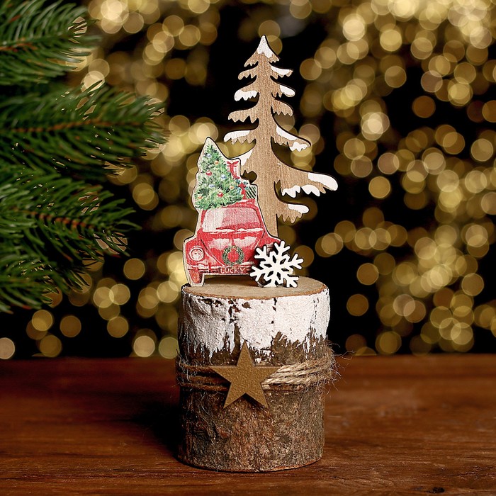 Декор «Новогоднее авто на пеньке», 7 × 7 × 17 см