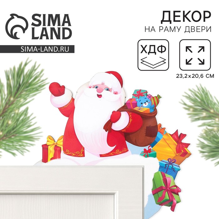 Новогодний декор на раму двери «Дед мороз», 23,2 х 20,6 см