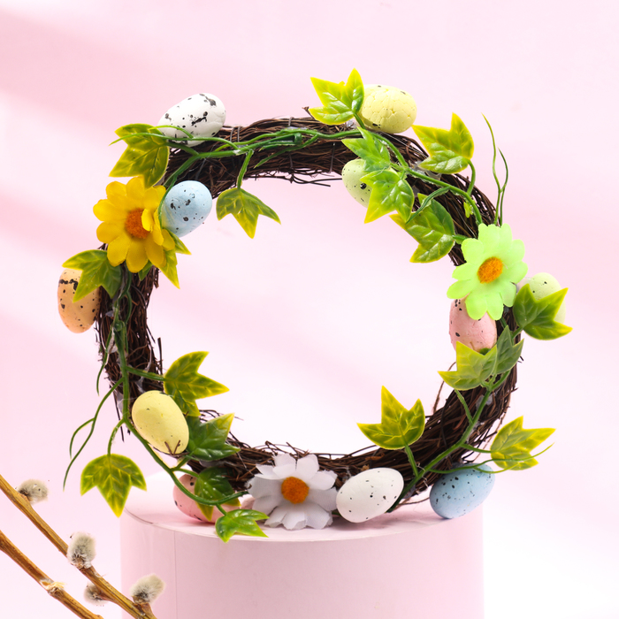 Пасхальный декор, венок на пасху «Яйца и цветы» 20×18×4 см