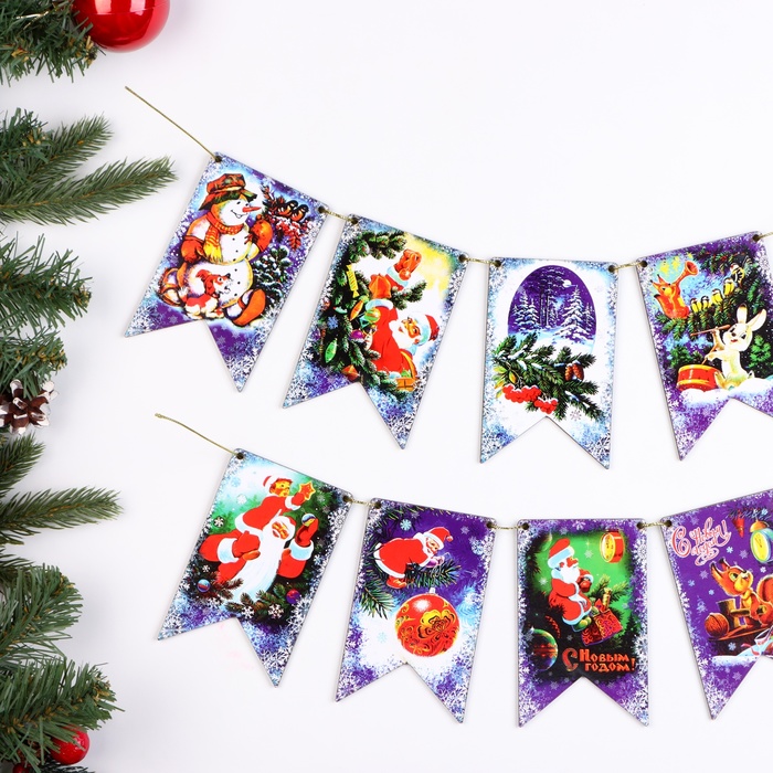 Гирлянда-флажки «Новогодние», из 10 шт., размер флажка 12×7.5 см