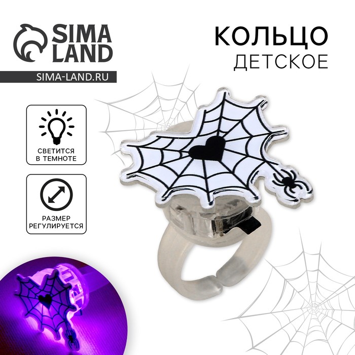 Кольцо детское с огоньком на Хэллоуин «Паутина», безразмерное