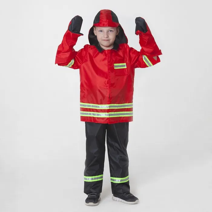 Карнавальный костюм «Пожарный»: куртка, брюки, ремень, шлем, р. 32–34, рост 128–134 см