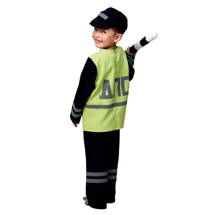 Карнавальный костюм «Полицейский ДПС», р. 30–32, рост 116–122 см: куртка, брюки, кепка, жезл