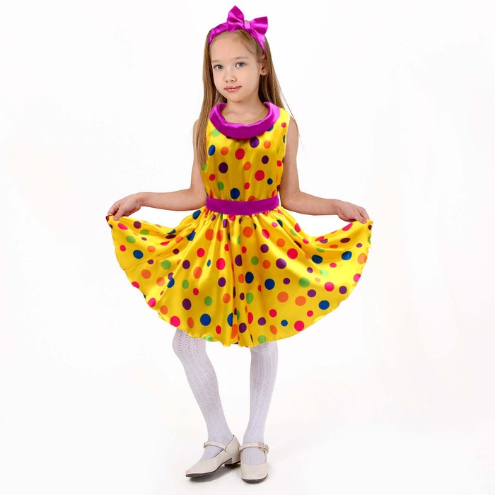 Карнавальный костюм «Стиляги», платье жёлтое в крупный горох, повязка, р. 30, рост 110-116 см
