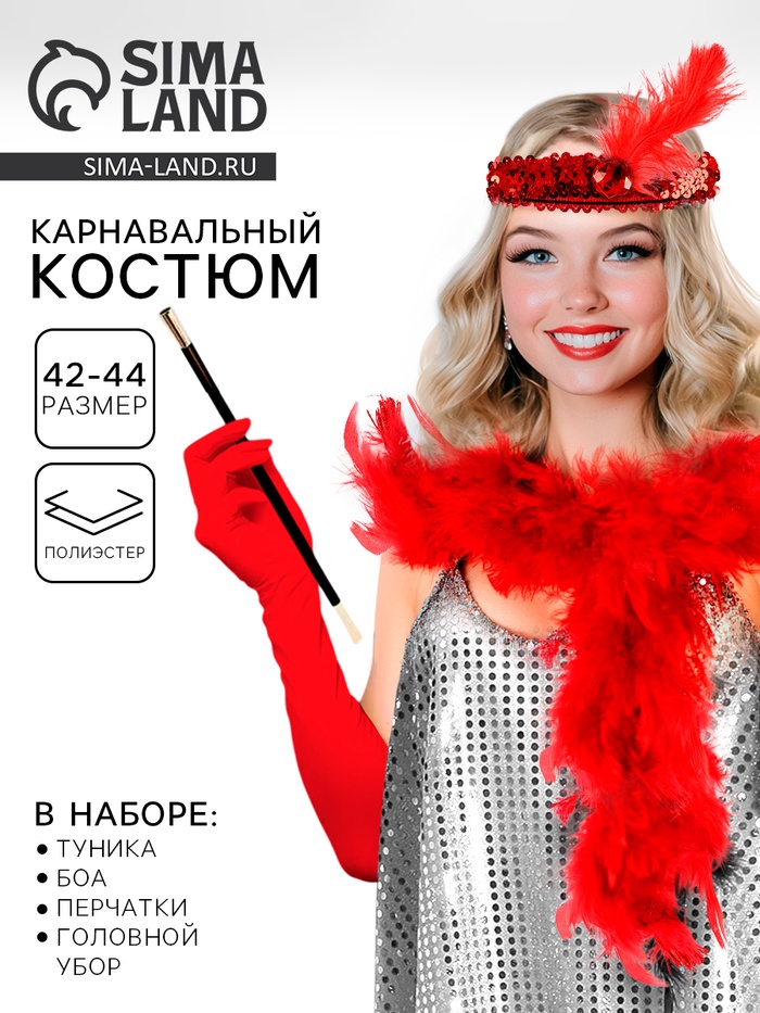 Карнавальный костюм «Гэтсби», платье, боа, перчатки, бусы, р-р. 42-44