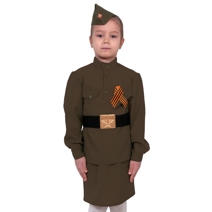 Костюм «Солдаточка»: гимнастёрка, ремень, юбка, пилотка, бант, рост 116–122 см