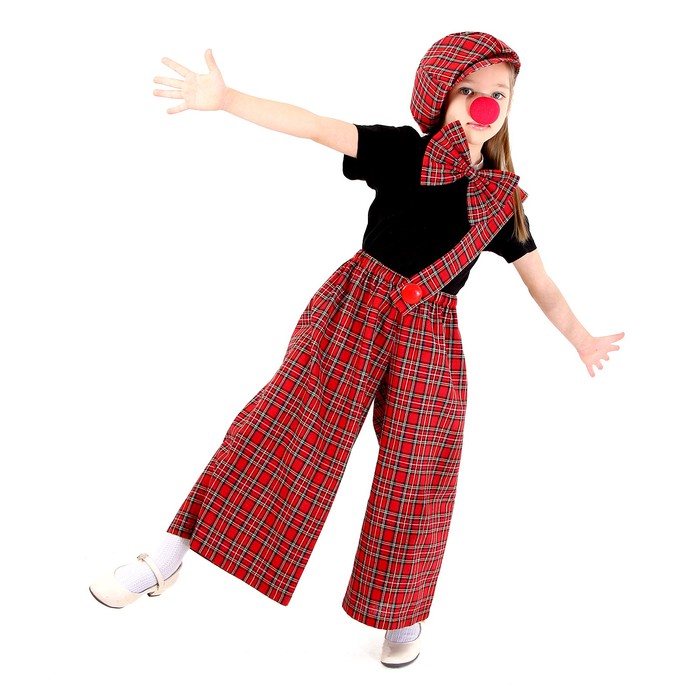 Костюм карнавальный «Клоун с бабочкой», красная клетка, рост 104-128 см