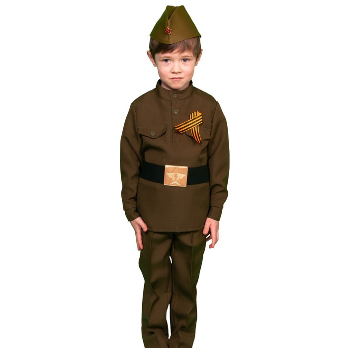 Карнавальный костюм «Солдатик», гимнастёрка, ремень, брюки, пилотка, р. S, рост 116-122 см