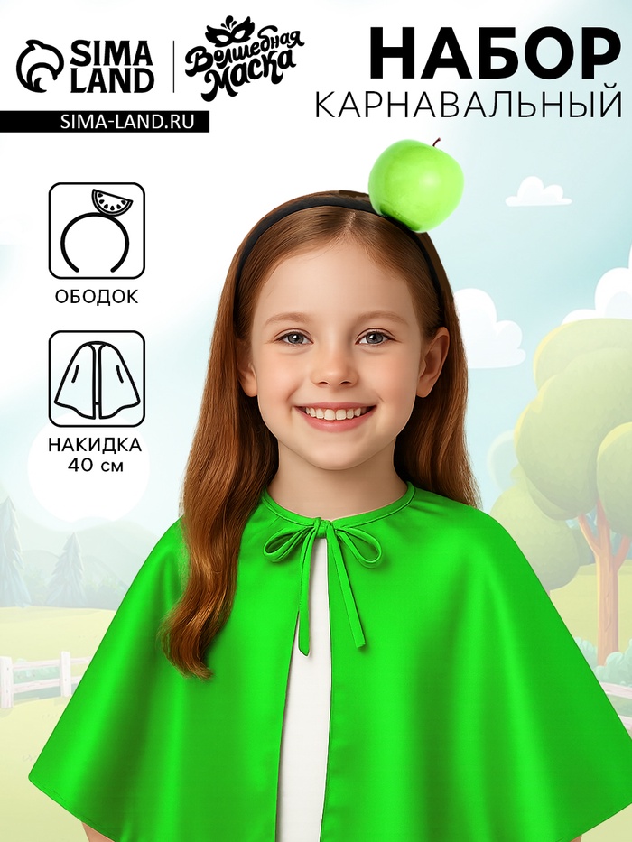 Карнавальный набор «Зелёное яблочко»: накидка, ободок