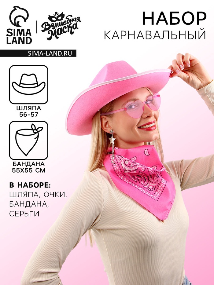 Карнавальный набор «Розовые мечты»: шляпа, очки, бандана, серьги