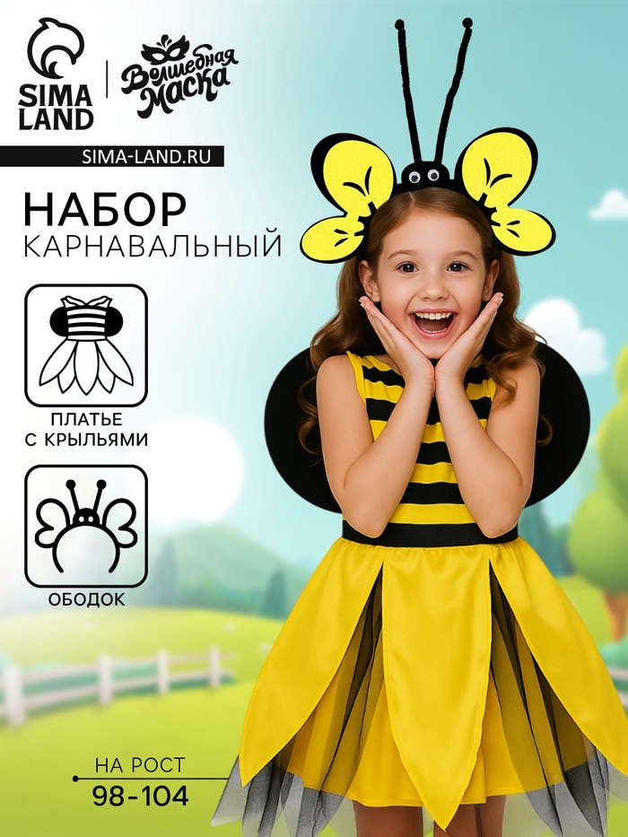 Карнавальный набор «Милая пчела», платье, ободок, рост 98-104 см