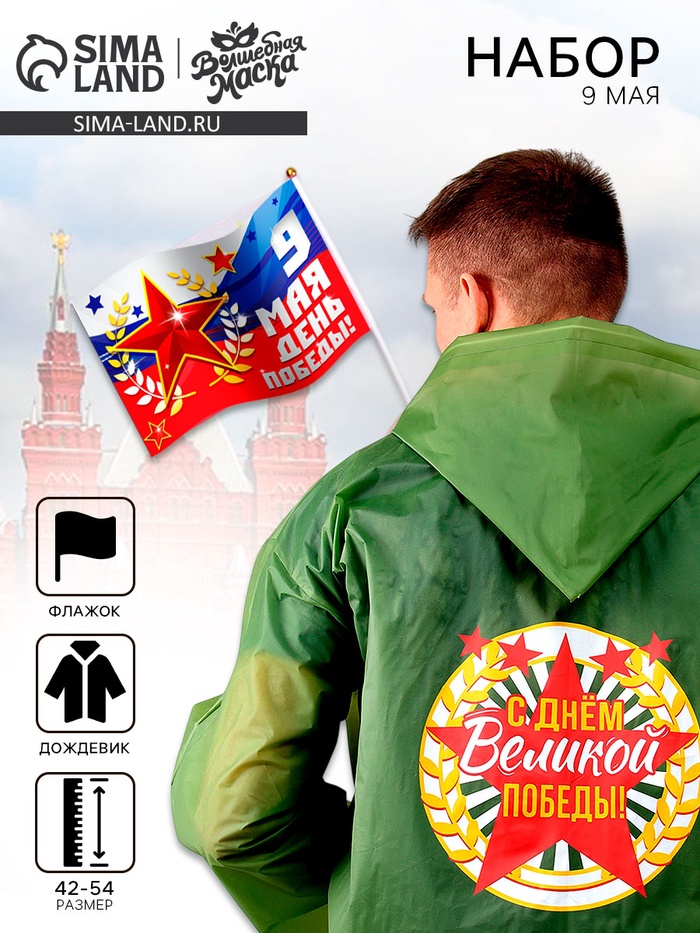 Набор к 9 мая «День победы!», р-р 42–54, дождевик, флажок