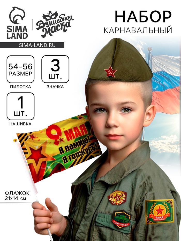 Набор военного на 9 мая «Я помню! Я горжусь!»: пилотка р-р 54-56, флажки, значки