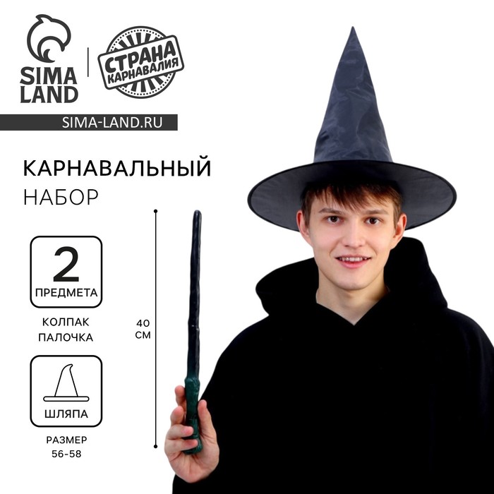Карнавальный набор для магии «Юный волшебник»: шляпа, волшебная палочка