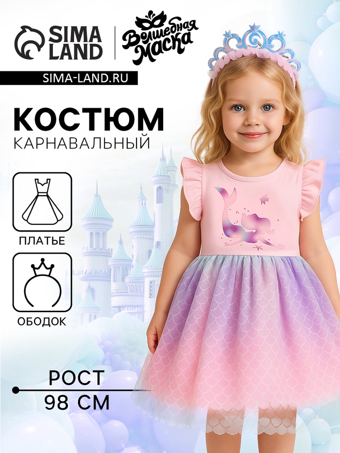 Карнавальный набор «Стильная принцесса», ободок, платье с русалкой, рост 98 см