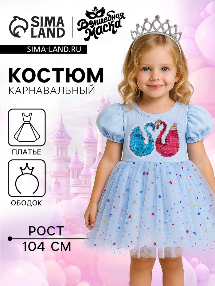 Карнавальный набор «Стильная принцесса», ободок, платье с лебедями, рост 104 см, голубой