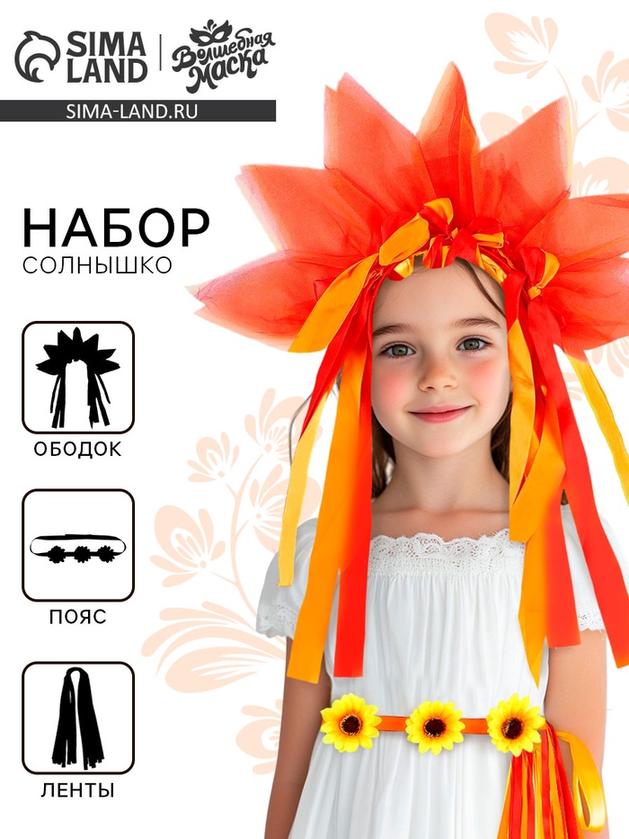 Карнавальный набор «Ясное солнышко»: ободок, пояс, ленты, красно-оранжевый