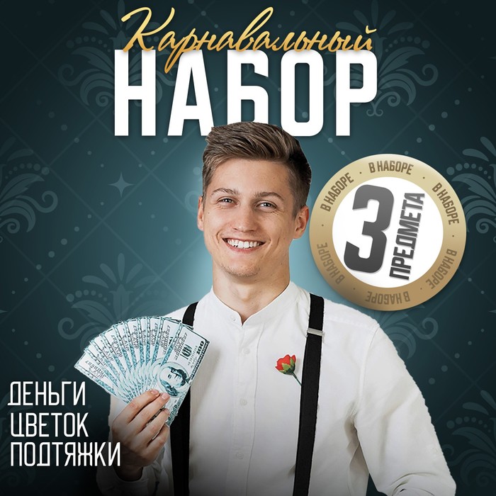 Карнавальный набор Retro-party, подтяжки, цветок ,пачка денег