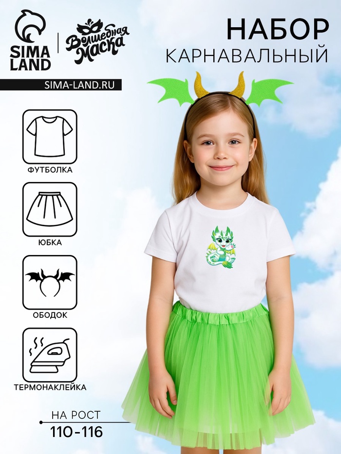 Карнавальный костюм «Дракон», футболка, юбка, ободок, термонаклейка, рост 110–116 см