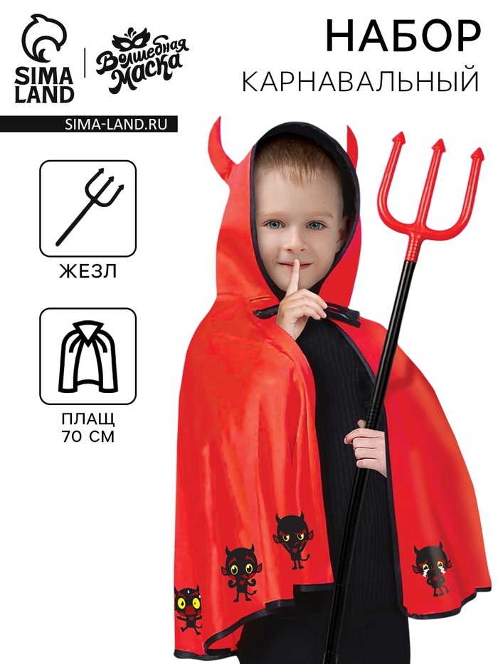 Карнавальный набор «Милый черт»: плащ с капюшоном и жезл