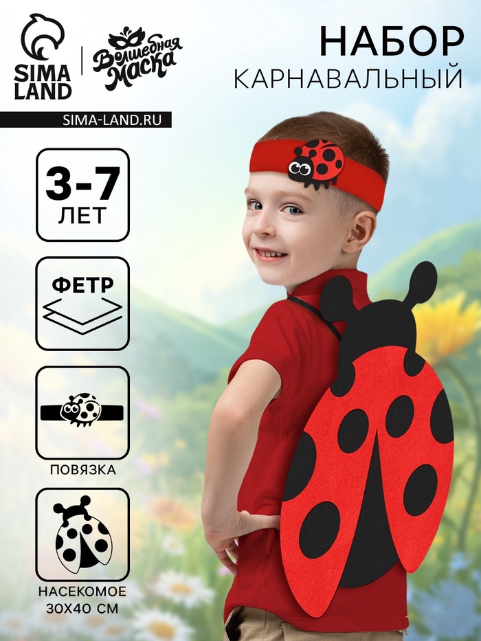 Карнавальный набор «Весёлые насекомые»: повязка и божья коровка из фетра, 3–7 лет
