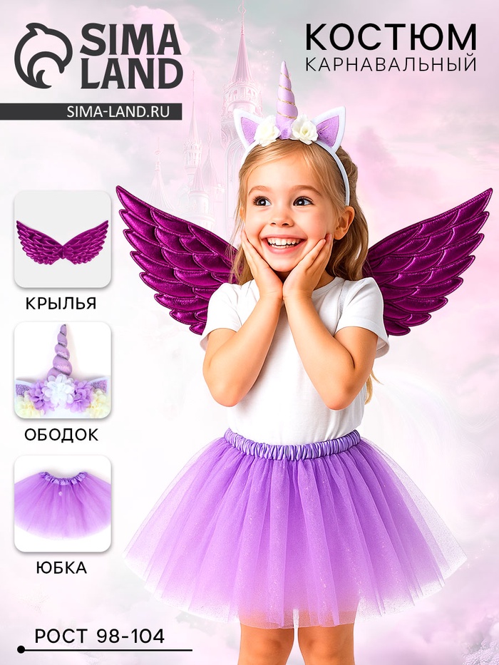 Карнавальный костюм «Нежный единорожек» юбка, ободок, крылья, фиолетовый