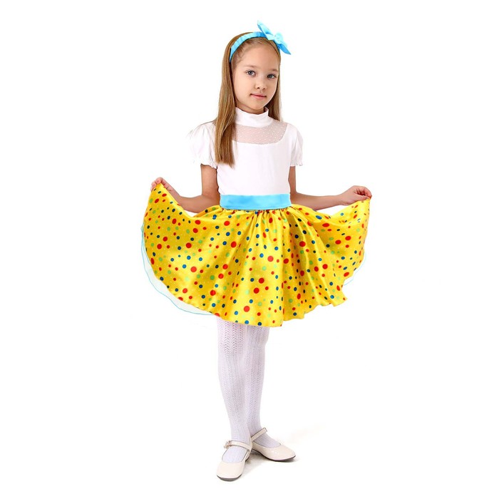 Костюм карнавальный «Стиляги 7», юбка жёлтая в мелкий цветной горох, пояс, повязка, рост 134-140 см