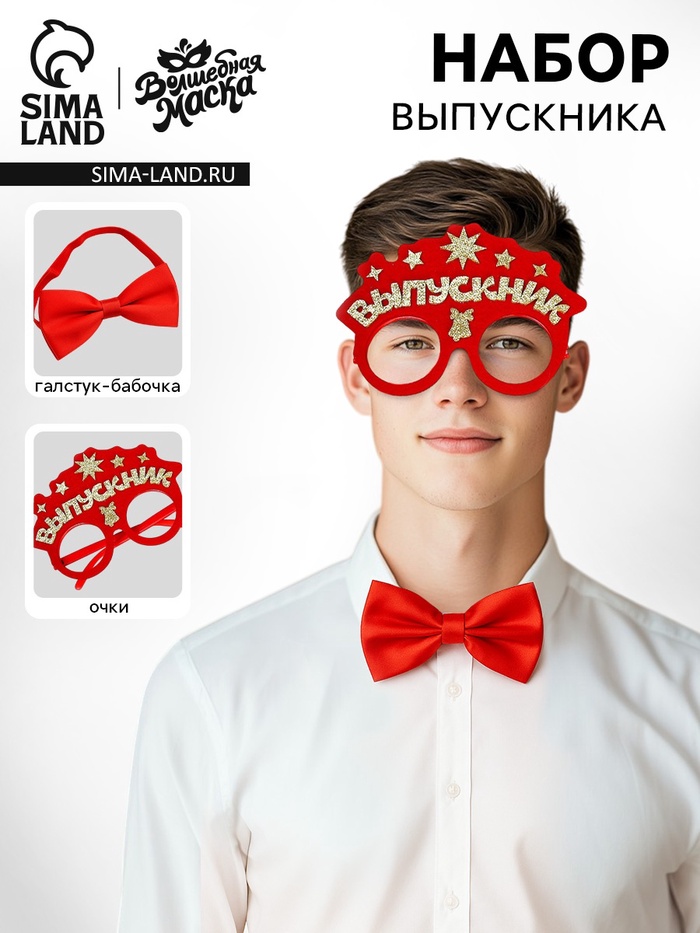 Набор выпускника «Умный выпускник» 2 предмета: очки, галстук-бабочка, красный