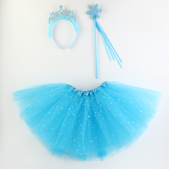 Карнавальный набор «Принцесса» 3 предмета: юбка, ободок, жезл, цвет голубой