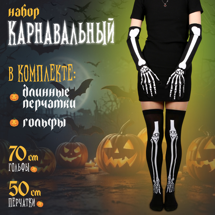 Карнавальный набор «Кости»: гольфы, длинные перчатки