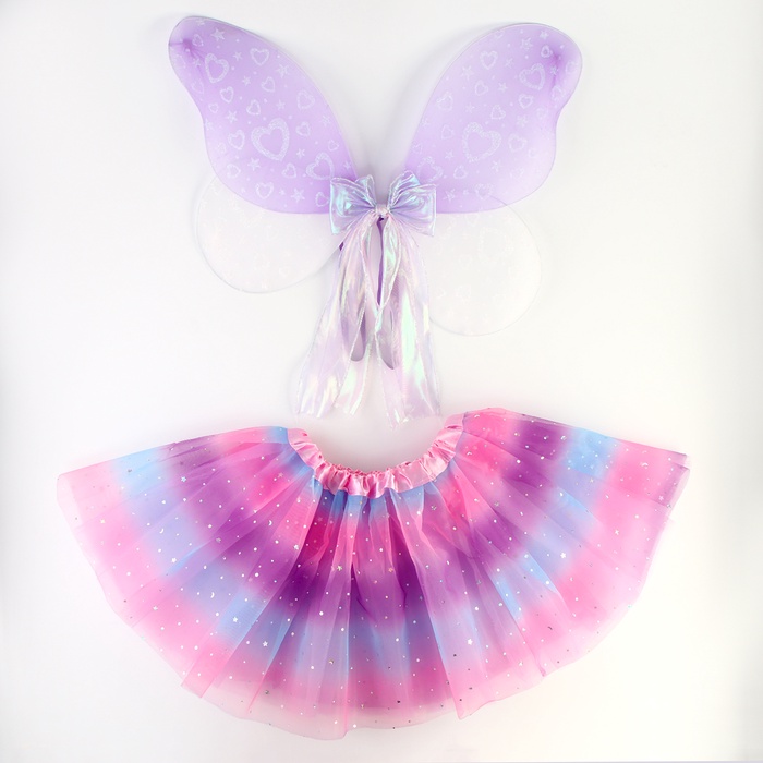 Карнавальный набор «Бабочка» 2 предмета: юбка, крылья. цвет радужный с блёстками