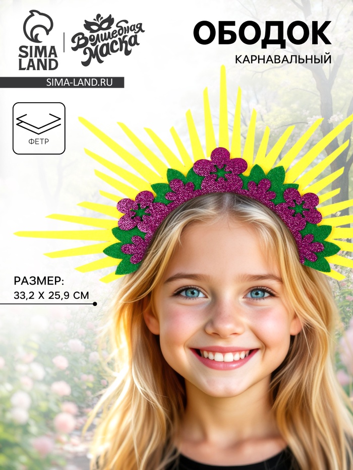 Ободок желтый 1.1×32.5 см с пружинками, в наборе 12 штук