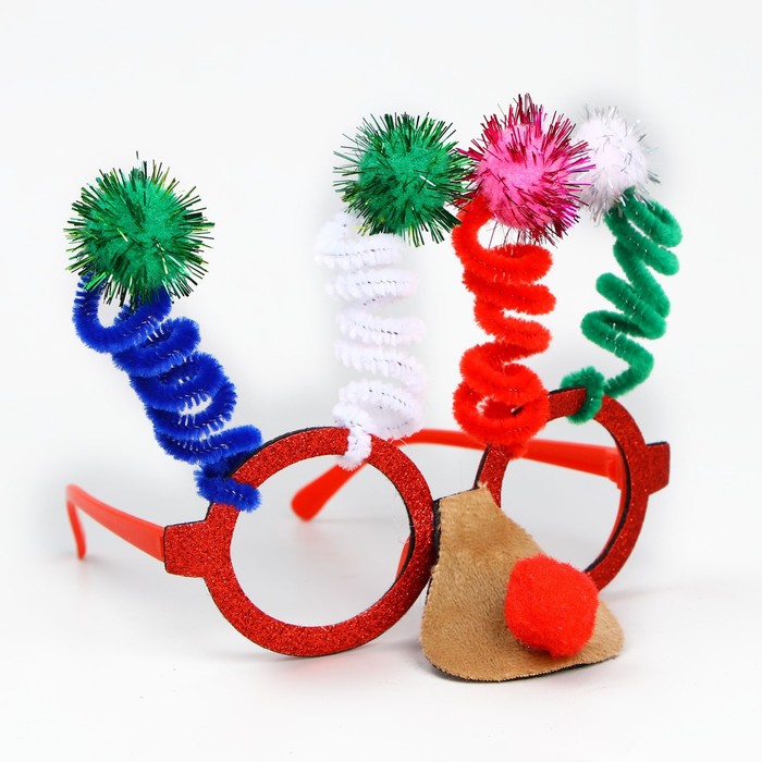 Очки карнавальные новогодние «Бомбошки» с носиком, цвета МИКС