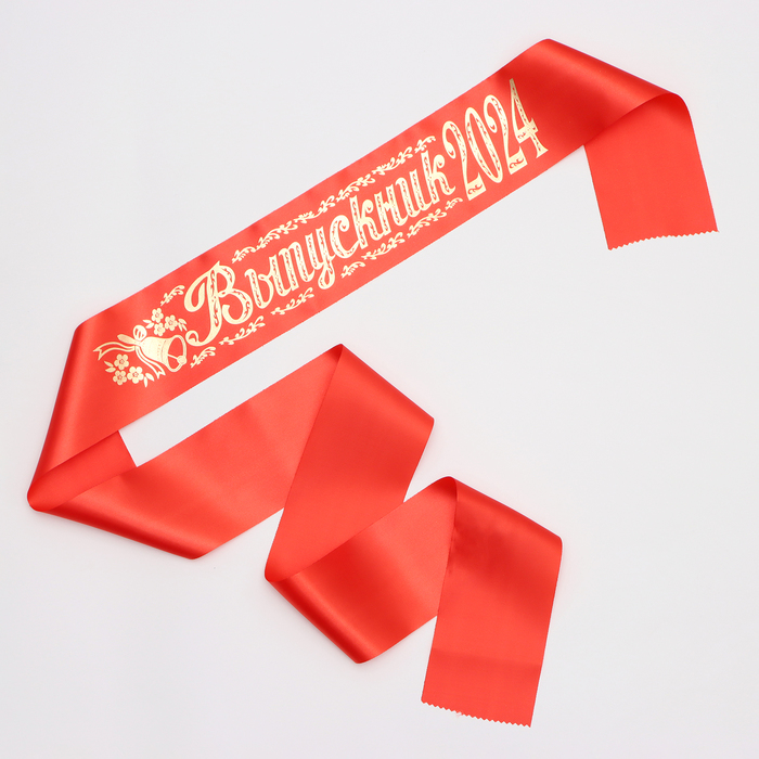 Лента на выпускной «Выпускник», шёлк красный 3D, 5 шт.
