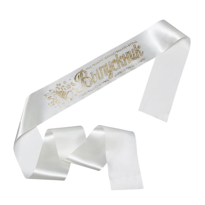 Лента на выпускной «Выпускник», шёлк белый фольга