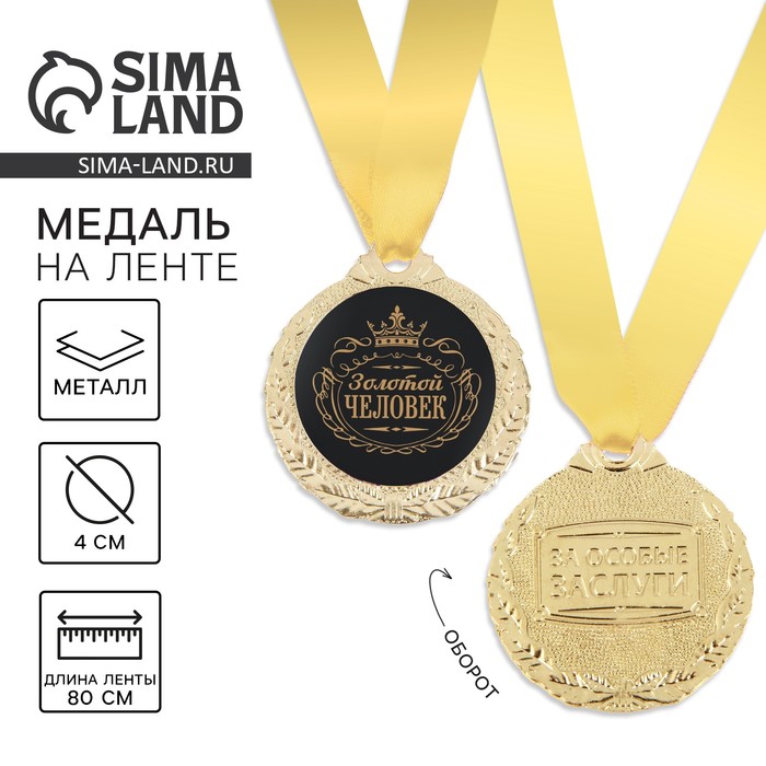 Медаль призовая «1 место» золотая 200, d=6.5 см, с лентой