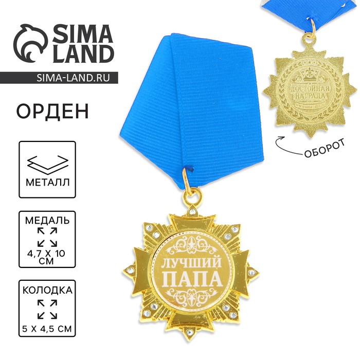 Медаль орден на подложке «Лучший папа», 4,7 х 10 см