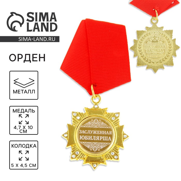 Медаль орден на подложке «Заслуженная юбилярша», 4,7 х 10 см