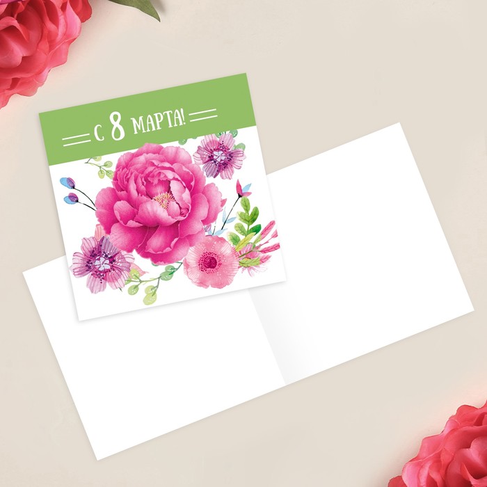 Открытка-мини «С 8 марта», пион, 7 × 7 см