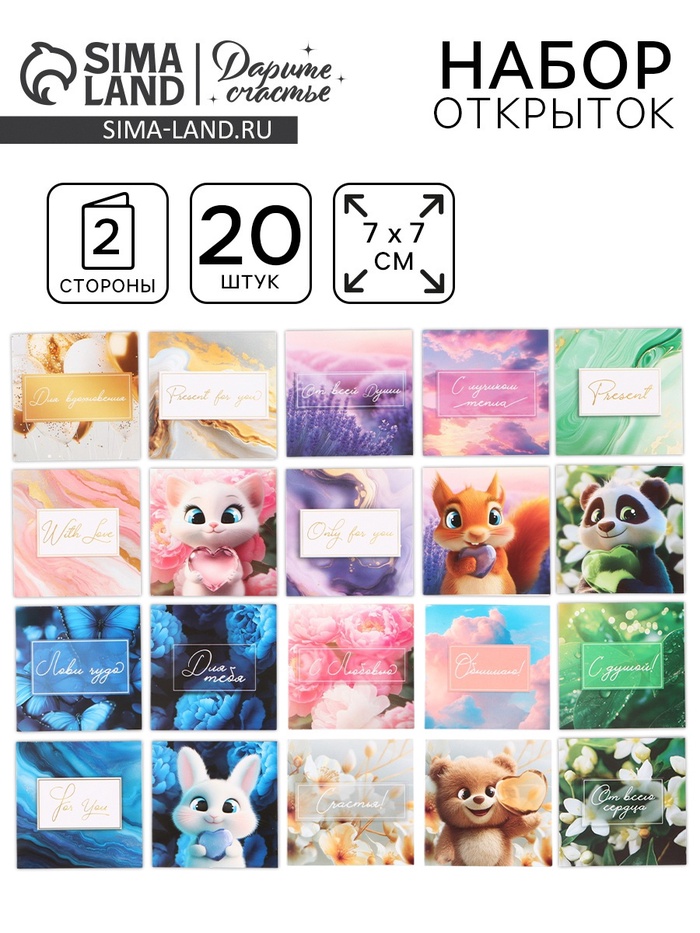 Набор мини-открыток «Универсальный», 20 шт., 7×7 см