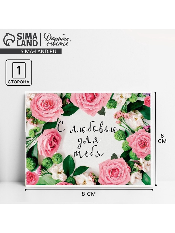 Открытка-комплимент «С любовью для тебя» розовые розы, 8×6 см