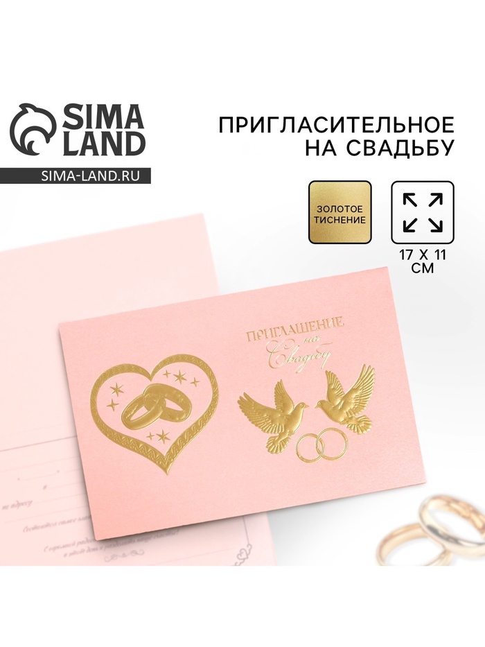 Приглашение на свадьбу ( цвет розовый), 17 х 11 см.
