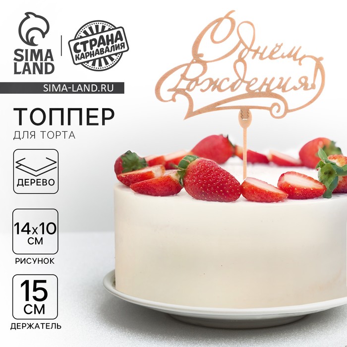 Топпер для торта «С днём рождения», 17×11 см, цвет розовый