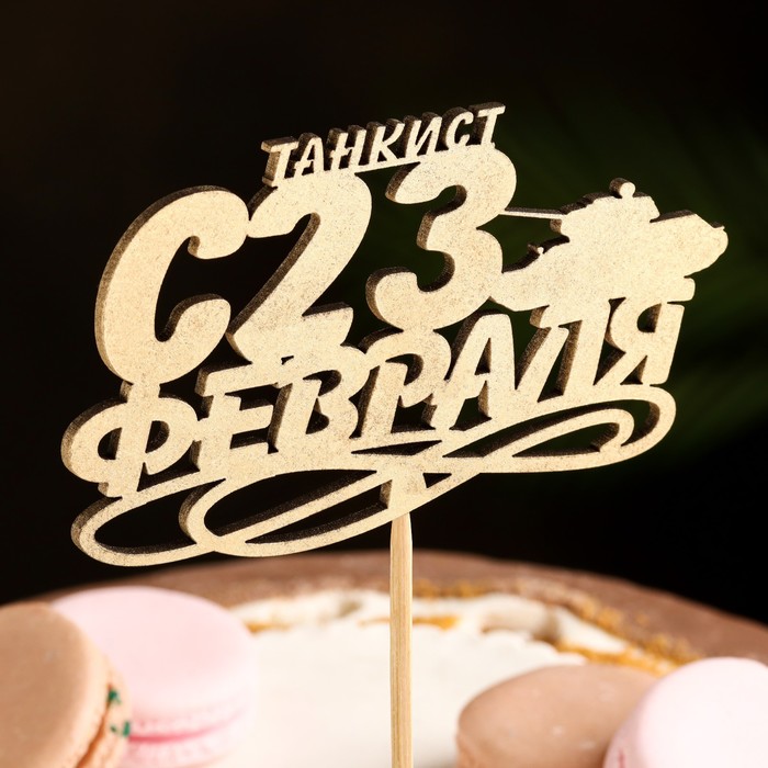 Топпер "С 23 Февраля, Танкист" на подвесе, золотой