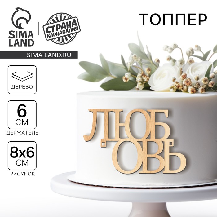 Топпер деревянный "Любимой сестре" золотой Дарим Красиво 14,3х6,7 см